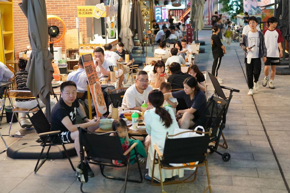 7月30日,消費(fèi)者在西安市一商業(yè)街區(qū)內(nèi)的餐館就餐。新華社記者 邵瑞 攝