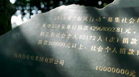 自2011年起,娃哈哈聯(lián)合杭州市總工會“春風(fēng)行動”辦公室,開啟了“娃哈哈·春風(fēng)助學(xué)”專項(xiàng)援助項(xiàng)目,主要資助建檔困難家庭子女就讀國內(nèi)全日制普通高校、成人高校、高等職業(yè)學(xué)校。自設(shè)立以來,累計(jì)幫助5萬多名困難學(xué)生走進(jìn)大學(xué)校園。