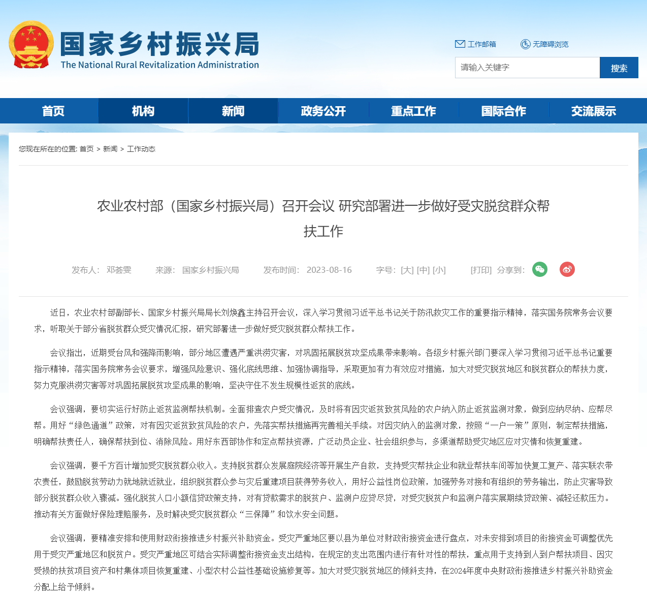 央視網(wǎng)消息:近日,農(nóng)業(yè)農(nóng)村部(國家鄉(xiāng)村振興局)召開會議,要求各級鄉(xiāng)村振興部門加大對受災(zāi)脫貧地區(qū)和脫貧群眾的幫扶力度,努力克服洪澇災(zāi)害等對鞏固拓展脫貧攻堅(jiān)成果的影響,堅(jiān)決守住不發(fā)生規(guī)模性返貧的底線。