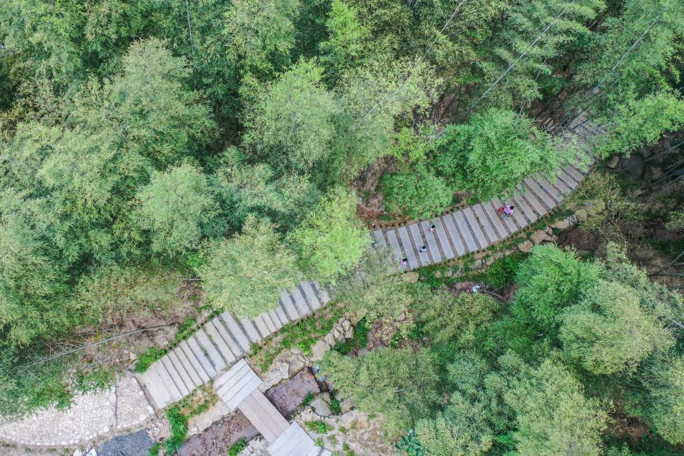 近年來,藍山縣打出一套“組合拳”,優(yōu)化營商環(huán)境,加強基礎(chǔ)設(shè)施建設(shè),支持民營企業(yè)發(fā)展,讓企業(yè)放心投資文旅產(chǎn)業(yè)。在藍山谷景區(qū),當?shù)卮迕裾涌煊尾降?、石拱橋等建設(shè),為即將到來的賞楓旺季做準備。