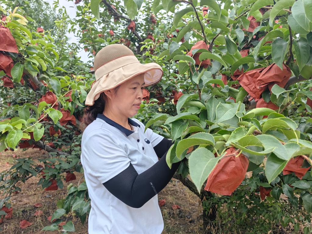 山東聊城冠縣蘭沃鄉(xiāng)韓路村的萬畝梨園內(nèi),村民正在梨園勞作。新華社記者張力元 攝
