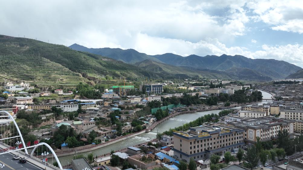 2023年8月24日,無人機拍攝的同仁市隆務河景色。(新華社記者張宏祥 攝)
