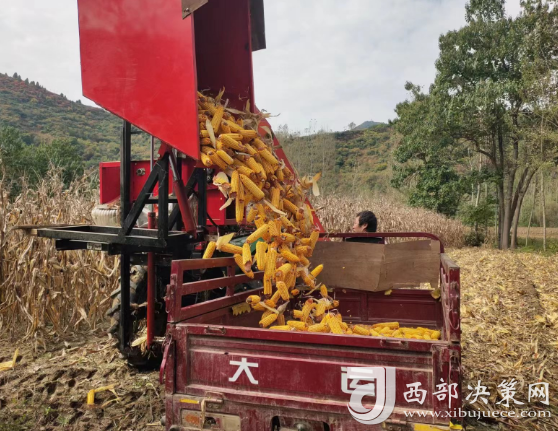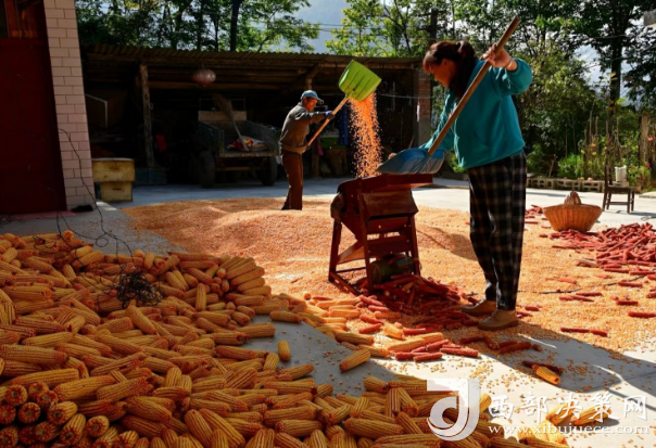 西部決策網(wǎng)訊(記者帥華鋒 通訊員 余小芹 余雅各 李三良)田疇沃野好“豐”光,遍地金黃糧滿倉(cāng)。金秋時(shí)節(jié),甘肅隴南兩當(dāng)縣西坡鎮(zhèn)田間地頭的玉米喜獲豐收,村民們正利用晴好天氣采收玉米,忙得不亦樂(lè)乎,家家戶(hù)戶(hù)房前屋后堆滿了金黃的玉米,洋溢著豐收喜悅的笑臉與收獲的金黃色玉米交相輝映,勾勒出一幅動(dòng)人的金秋豐收?qǐng)D。