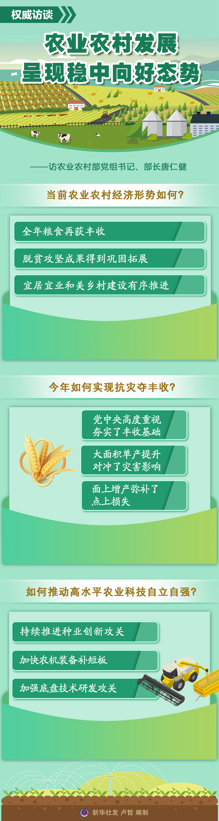 新華社北京11月8日電 題:農業(yè)農村發(fā)展呈現(xiàn)穩(wěn)中向好態(tài)勢——訪農業(yè)農村部黨組書記、部長唐仁健