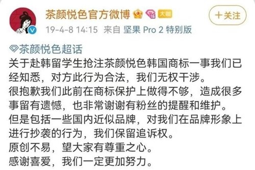 對(duì)此,茶顏悅色也十分無奈,表示:已經(jīng)悉知,對(duì)方此行為合法,我們無權(quán)干涉。