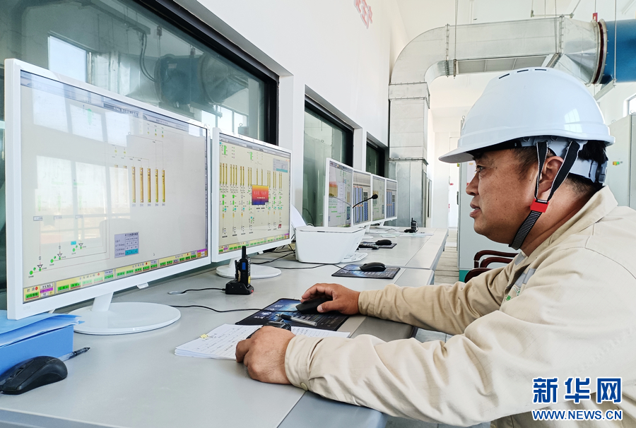 安徽雁湖面粉有限公司工作人員操作自動化控制系統(tǒng)。新華網(wǎng)李東標(biāo) 攝
