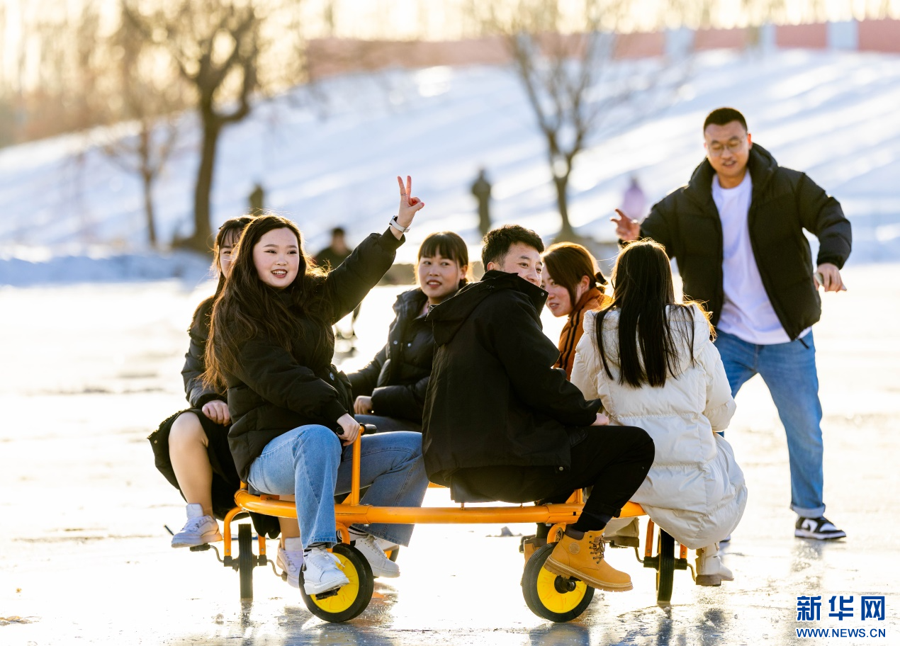 12月7日,游客在呼和浩特市玉泉區(qū)大庫倫村“冰雪大世界”內(nèi)體驗(yàn)多人冰車。新華網(wǎng)發(fā)(丁根厚 攝)