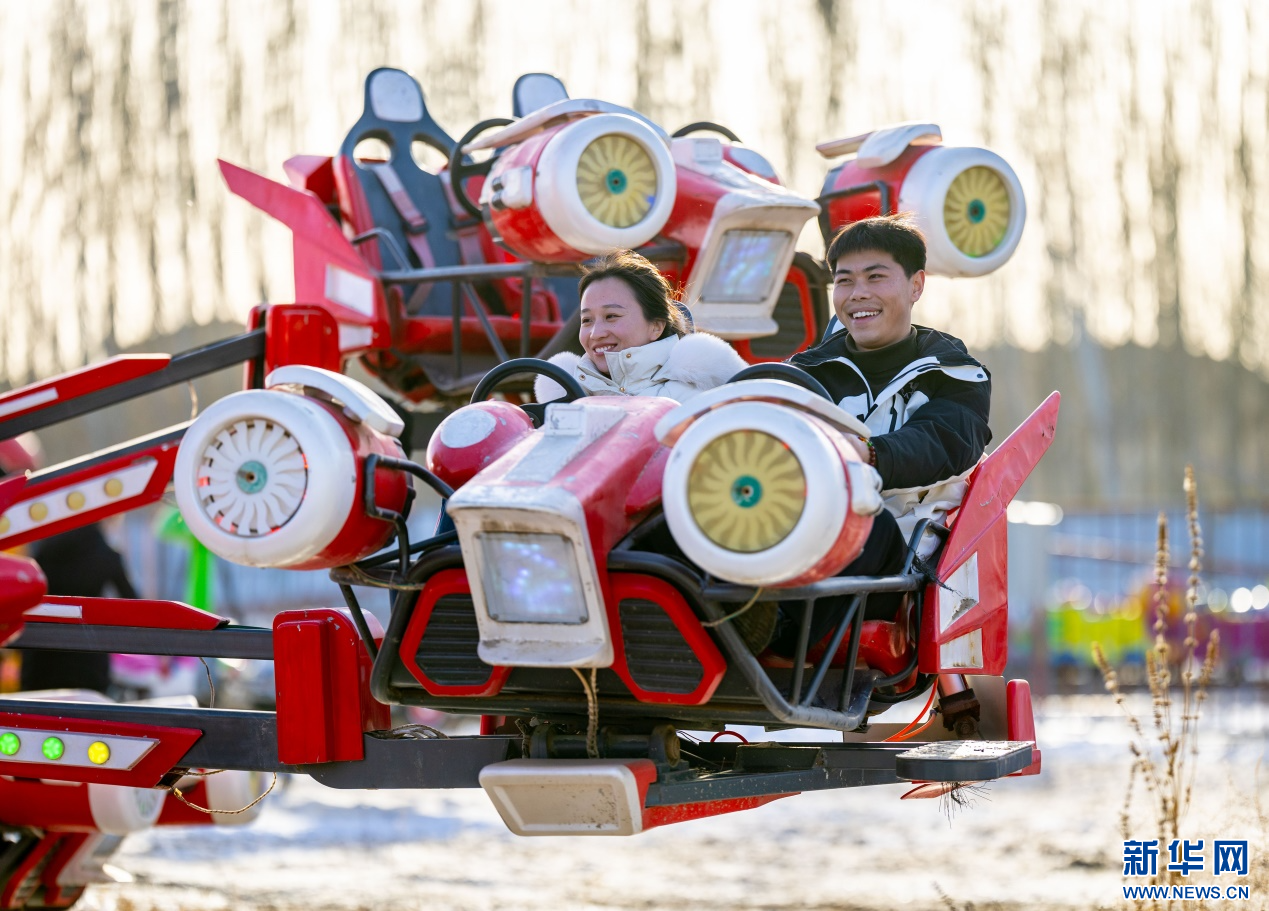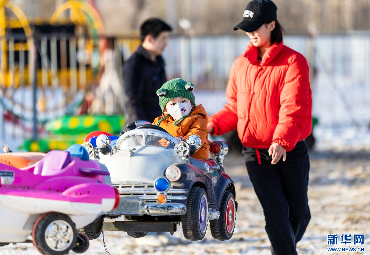 12月7日,小朋友在呼和浩特市玉泉區(qū)大庫倫村“冰雪大世界”內(nèi)體驗(yàn)旋轉(zhuǎn)汽車項(xiàng)目。新華網(wǎng)發(fā)(丁根厚 攝)