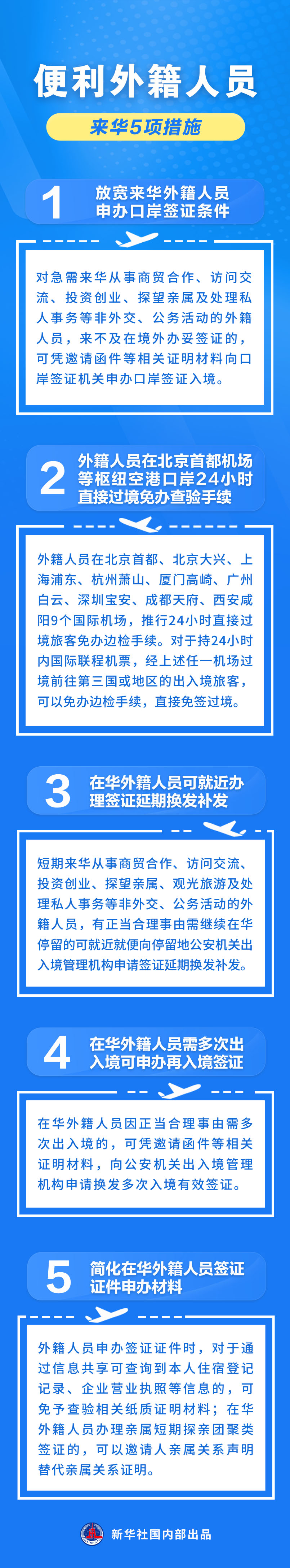 國家移民管理局外國人管理司司長毛旭介紹,這次推出的放寬來華外籍人員申辦口岸簽證條件措施,覆蓋了絕大多數(shù)有緊急來華需求的外籍人員,更充分地發(fā)揮口岸簽證的功能優(yōu)勢,為外籍人員來華提供更加便捷靈活的途徑。
