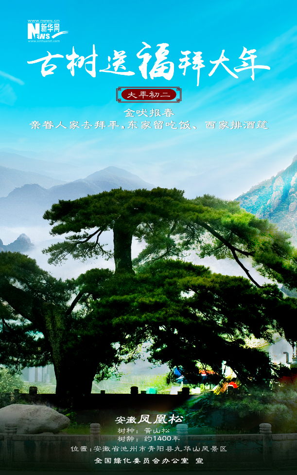 今年春節(jié),新華網聯合全國綠化委員會辦公室,策劃推出“古樹送福拜大年”系列海報12張,選取寓意喜樂吉祥、文化底蘊深厚、景觀自然絕美的古樹名木,結合中國春節(jié)習俗,給廣大網友拜年啦!