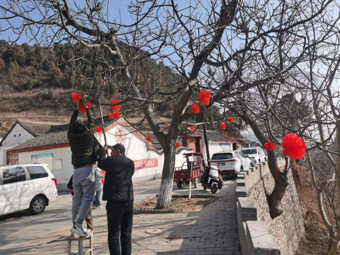 過新年掛燈籠是中國傳統(tǒng)習俗,象征著團團圓圓、紅紅火火。雖然當下正值嚴寒時節(jié),但干部群眾一同掛燈籠的熱情卻很高漲,你扶梯子、我掛燈籠的熱鬧場景隨處可見。大家在相互密切配合下,一個個帶著新年祝福的紅燈籠掛滿了大街小巷,為全鄉(xiāng)村容村貌增色不少。“大紅燈籠掛起來,一下子就有年味啦,看起來真喜慶!”過往的村民高興地說到。