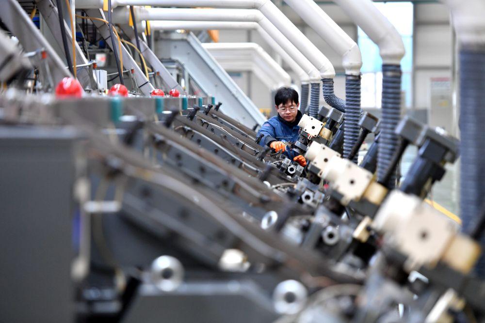 △ 2024年2月20日,在河北邯鄲市永年區(qū)一家緊固件生產企業(yè),工人在數(shù)字化智能生產車間內工作。