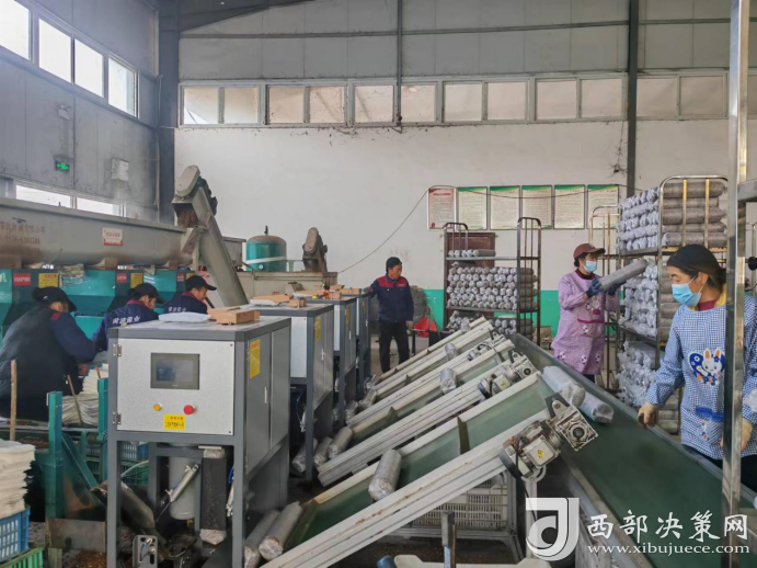 伴隨著機械的聲響,菌棒生產(chǎn)車間里的工人們忙中有序,一堆堆木屑通過攪拌、裝袋、滅菌、接種等工序,變成了一個個菌棒,源源不斷地走下生產(chǎn)線,走進養(yǎng)菌室,孕育著致富的希望。
