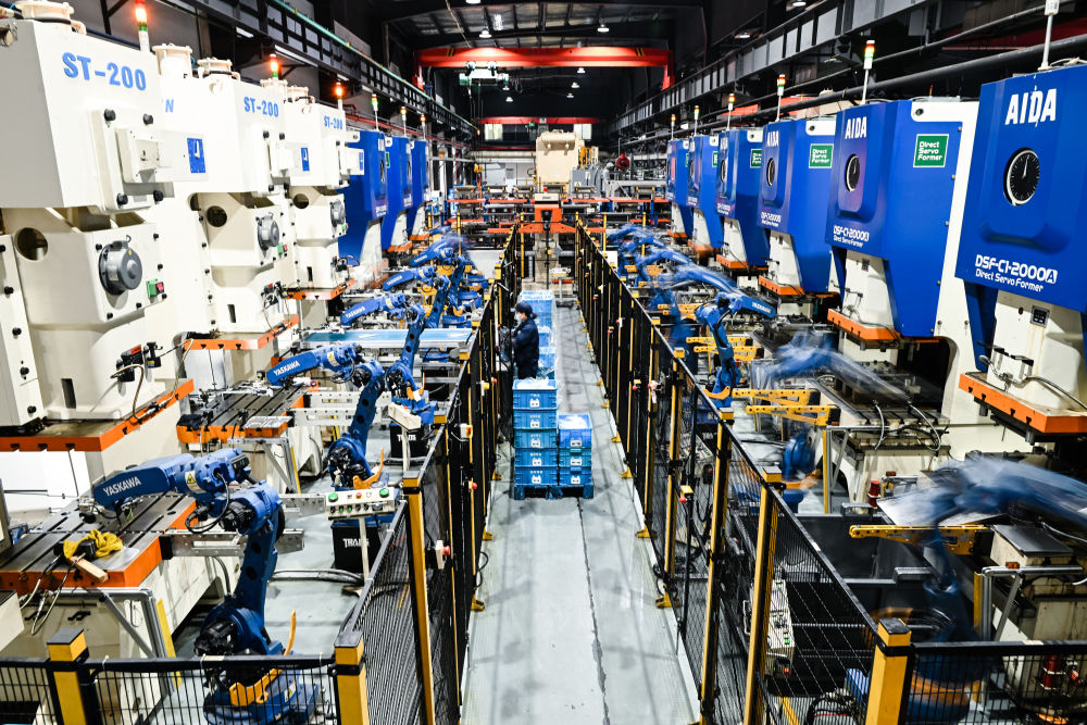 2024年2月28日,在“江蘇省專精特新中小企業(yè)”無(wú)錫微研精工科技有限公司智能生產(chǎn)車間,機(jī)械臂在作業(yè)。新華社記者 季春鵬 攝