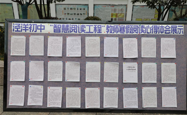 學(xué)校成立了專家組,從全校師生上交的2000余份作品中,遴選出75份優(yōu)秀學(xué)生作業(yè)成果和53篇教師優(yōu)秀閱讀成果,在校園集中布展。大家的智慧成果引來了廣大師生的駐足欣賞,成為涇中開學(xué)后一道靚麗的校園風(fēng)景。