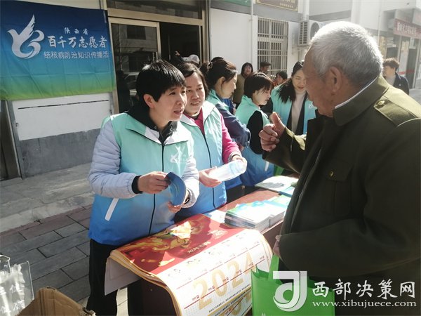 深入開(kāi)展肺結(jié)核防治知識(shí)進(jìn)社區(qū)活動(dòng)。3月24日,縣衛(wèi)健局、疾控中心、縣人民醫(yī)院、縣紫柏衛(wèi)生院聯(lián)合在城關(guān)社區(qū)開(kāi)展了結(jié)核病和飲水安全宣傳活動(dòng)?;顒?dòng)期間,醫(yī)務(wù)人員為群眾免費(fèi)測(cè)量血壓、開(kāi)展義診咨詢(xún),現(xiàn)場(chǎng)志愿者從結(jié)核病的傳播途徑、防控措施及國(guó)家的優(yōu)惠政策方面,對(duì)前來(lái)咨詢(xún)的群眾進(jìn)行了詳細(xì)的解答,為來(lái)往居民介紹了結(jié)核病、飲水安全小知識(shí)?;顒?dòng)當(dāng)天,共計(jì)發(fā)放肺結(jié)核宣傳年畫(huà)200余張,宣傳冊(cè)、宣傳彩頁(yè)共計(jì)10余種500余份,圍裙、手提袋300余個(gè),為群眾提供咨詢(xún)服務(wù)100余人次。