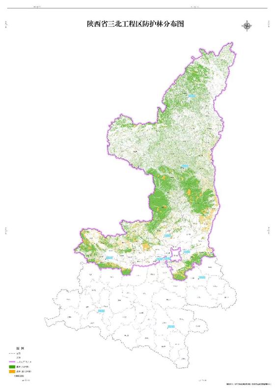 “三北工程”是“防護林”工程,也是中國生態(tài)文明建設的重要標志性工程。1978年11月25日,國務院批準實施三北防護林體系建設工程(簡稱“三北工程”),規(guī)劃期由1978年到2050年,規(guī)劃區(qū)總面積65億畝。“三北工程”是人類最具雄心的生態(tài)工程。陜西是“三北工程”之省,秦嶺以北的黃河流域,包括秦嶺北麓、關中平原、渭北旱塬、丘陵溝壑、毛烏素沙地,皆是“三北工程”區(qū)。陜西“三北工程”區(qū)總面積1.83億畝,占全省土地面積的59.29%、占全國“三北工程”區(qū)面積的2.8%。